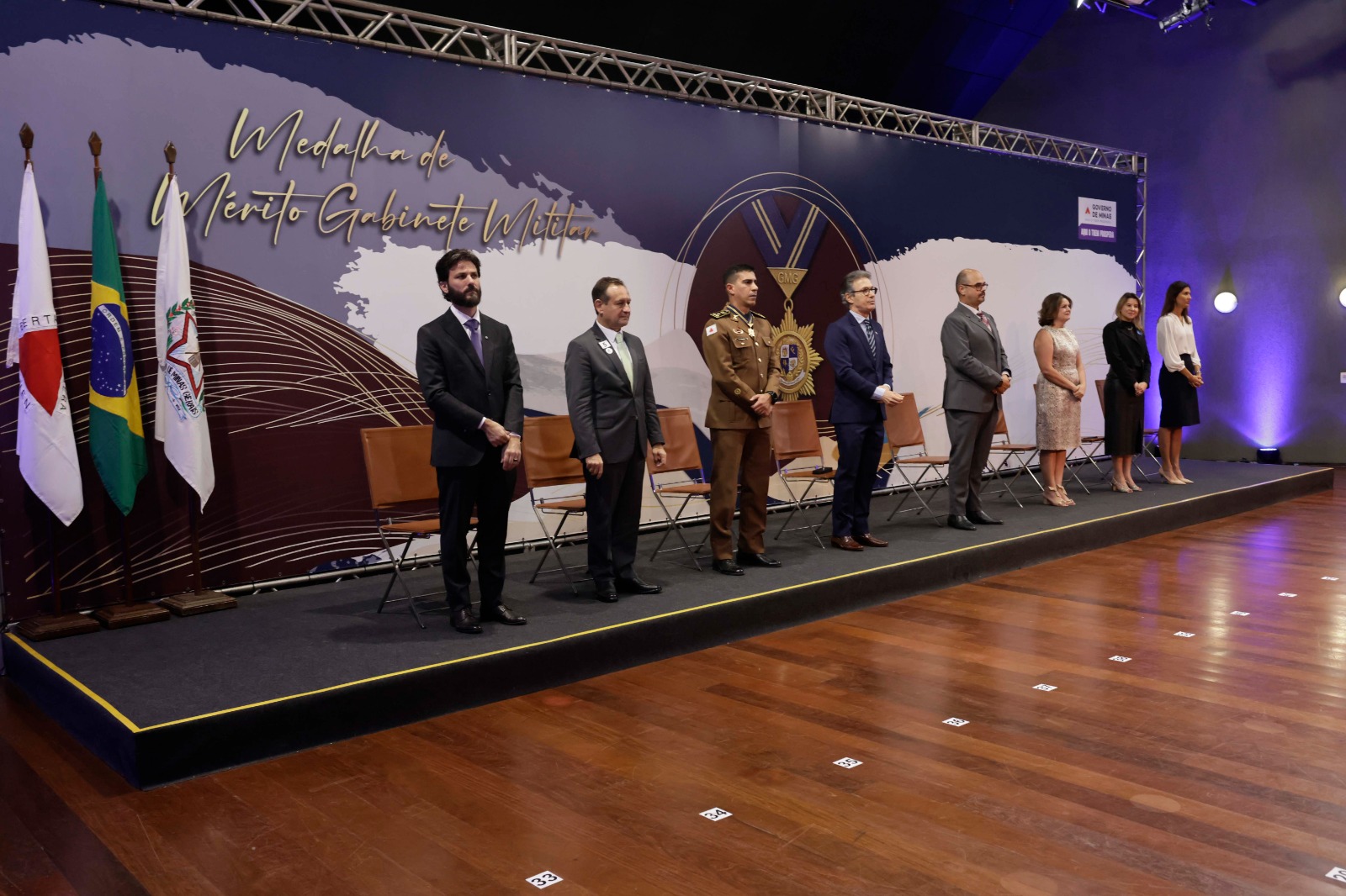 Entre os homenageados, estavam o governador, o vice-governador Mateus Simões e a primeira-dama Christiana Renault, que preside o Servas. O evento também contou com a presença de secretários de Estado, presidentes de órgãos estaduais, deputados e comandantes das Forças de Segurança do Estado, além de militares e ex-chefes do GMG.