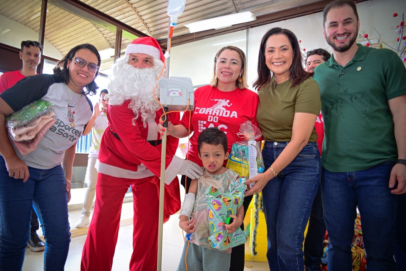 “É um momento verdadeiramente especial, porque estamos aqui para apoiar as crianças em situação de vulnerabilidade social, que estão em tratamento e internadas. Elas merecem todo o carinho e atenção, especialmente neste período do ano”, afirmou a vice-governadora. Mailza também expressou sua gratidão à equipe do Ifac, que se mobilizou para arrecadar os itens doados, ressaltando a importância do envolvimento de todos os participantes para trazer conforto às crianças durante a internação.