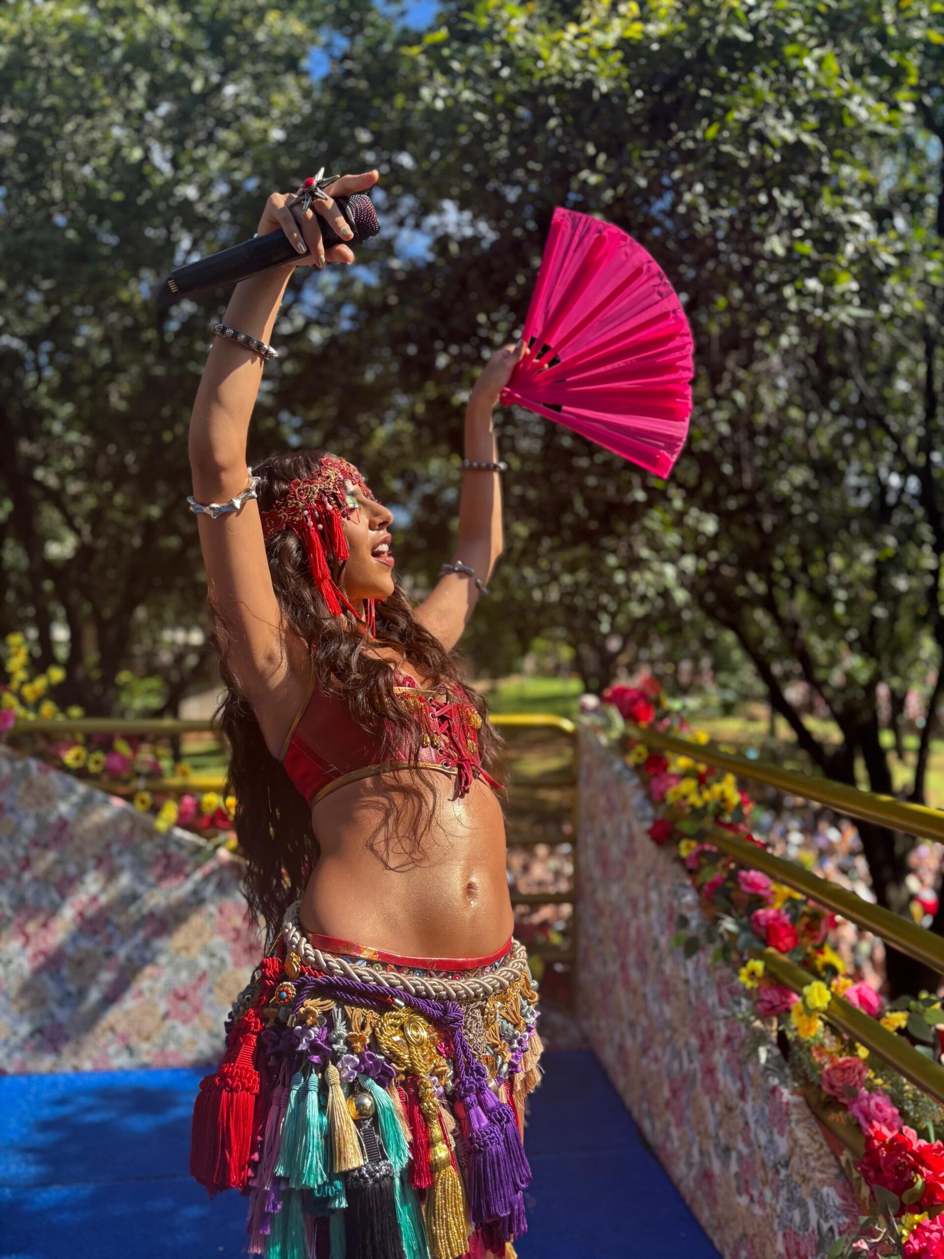 A concentração do evento estava marcada para começar às 13h, mas o desfile só teve início às 15h. A artista, que se tornou um dos símbolos do carnaval mineiro, precisou de escolta da Polícia Militar para chegar ao trio elétrico, enfrentando um mar de pessoas entusiasmadas.
