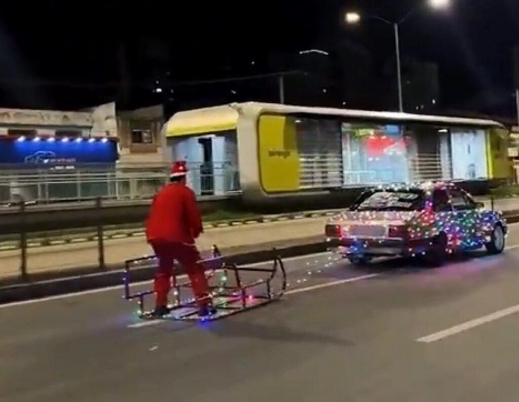 A Polícia Militar de Minas Gerais localizou o homem que, vestido de Papai Noel, realizou manobras arriscadas na avenida Cristiano Machado, próximo ao bairro Ipiranga, na região Nordeste de Belo Horizonte, durante as festividades natalinas. As imagens que viralizaram nas redes sociais retratam o suspeito sendo puxado por um Chevrolet Chevette enquanto “surfava” sobre um trenó metálico, sem rodas e sem qualquer equipamento de segurança.