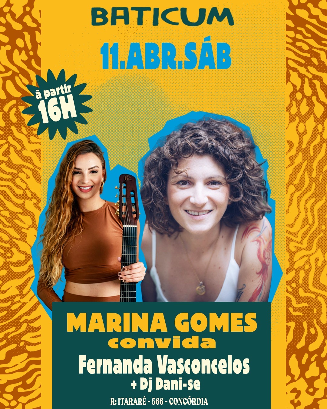 **Vendas:** [Sympla](https://www.sympla.com.br/evento/marina-gomes-convida-fernanda-vasconcelos/3372184)