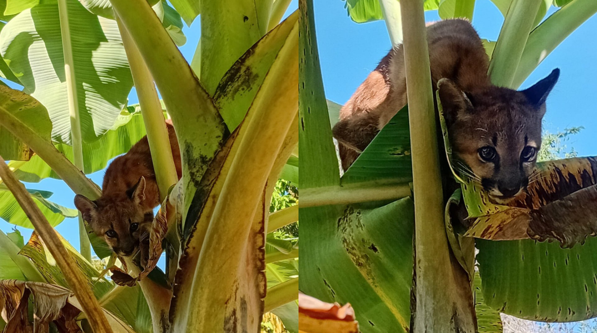 Um filhote de onça-parda surpreendeu moradores de Santana de Pirapama, em Minas Gerais, ao ser descoberto no alto de uma bananeira na manhã do último sábado (4/3). A presença do animal, encontrado em uma área residencial, acionou rapidamente as equipes do Corpo de Bombeiros.