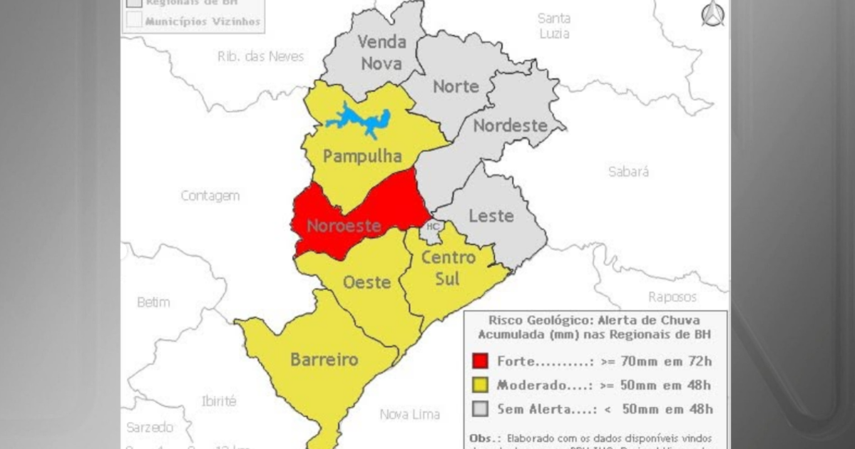 O acumulado de precipitação nas últimas 12 horas foi alarmante, atingindo 73,6 mm na regional Noroeste, que registrou o maior índice entre as estações de monitoramento. As outras regiões também não ficaram atrás: Barreiro contabilizou 65,6 mm, Centro-Sul 68 mm e Oeste 57,2 mm.