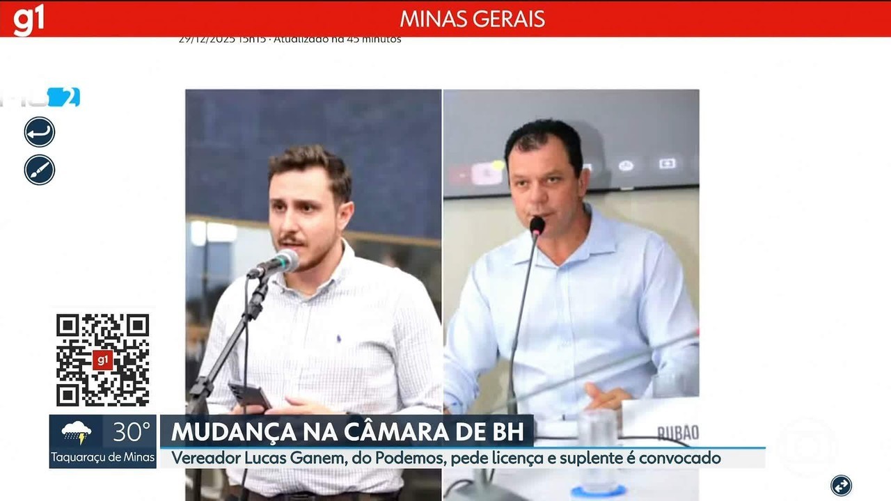 Rubão, do Podemos, tomou posse como vereador de Belo Horizonte nesta terça-feira (6) em um momento marcado por polêmicas. Ele assume o cargo deixado por Lucas Ganem, também do Podemos, que pediu licença por 121 dias em meio a investigações que envolvem suspeitas de fraudes na declaração de domicílio eleitoral.