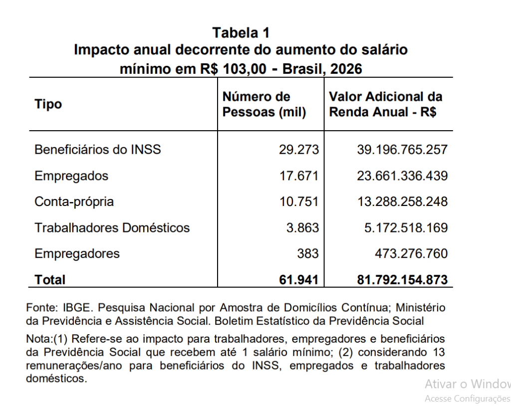 Fernando Ferreira Duarte, economista e supervisor técnico do Dieese em Minas Gerais, apontou que cerca de 61,9 milhões de pessoas têm seus rendimentos vinculados ao salário mínimo. “Considerando todo o ano de 2026, esse aumento deve resultar em uma injeção de R$ 81,7 bilhões na economia. Isso inclui não apenas trabalhadores de diversas categorias, mas também aposentados e pensionistas do INSS, que somam quase 30 milhões de beneficiários”, explicou.